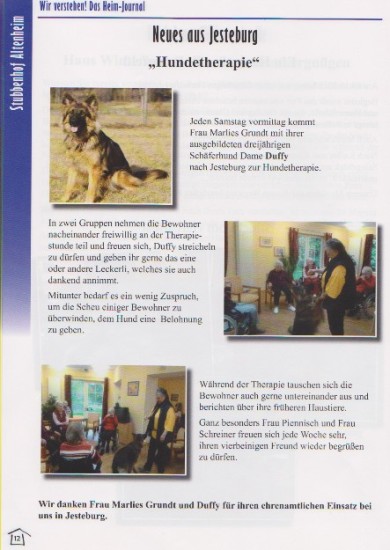 Duffy vom Waldschloss in Wir verstehen! Das Heim-Journal vom Stubbenhof Altenheim (Dezember 2013):