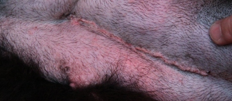 Langsam fallen Enni die Haare am Bauch aus, sodass man die hinteren Zitzen