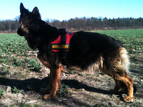 damit die anderen Hunde nicht unbedingt zu Askia rennen. Wir haben die