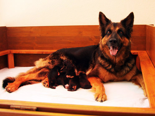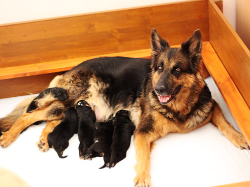 | Am Morgen des 07.04.2014 bekam Askia einen weiteren Welpen und konnte so einen Kaiserschnitt vermeiden: | ||||||