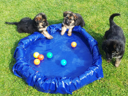 Welpenauslauf Stück für Stück. Heute verbringen die Welpen bei gutem Wetter