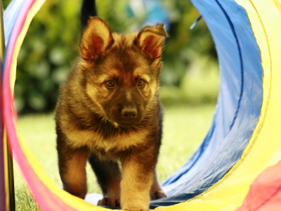 natürlich jede Menge Spielzeug und unter Aufsicht auch einen Welpentunnel und